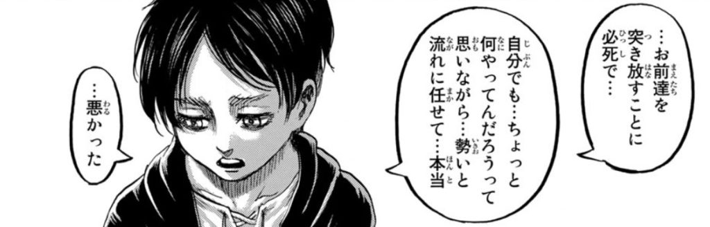 >そもそもそんな世界にしたのが自分自身なので結局アルミンなんも悪くねぇじゃんってなって自分にイラつくことになるんだ