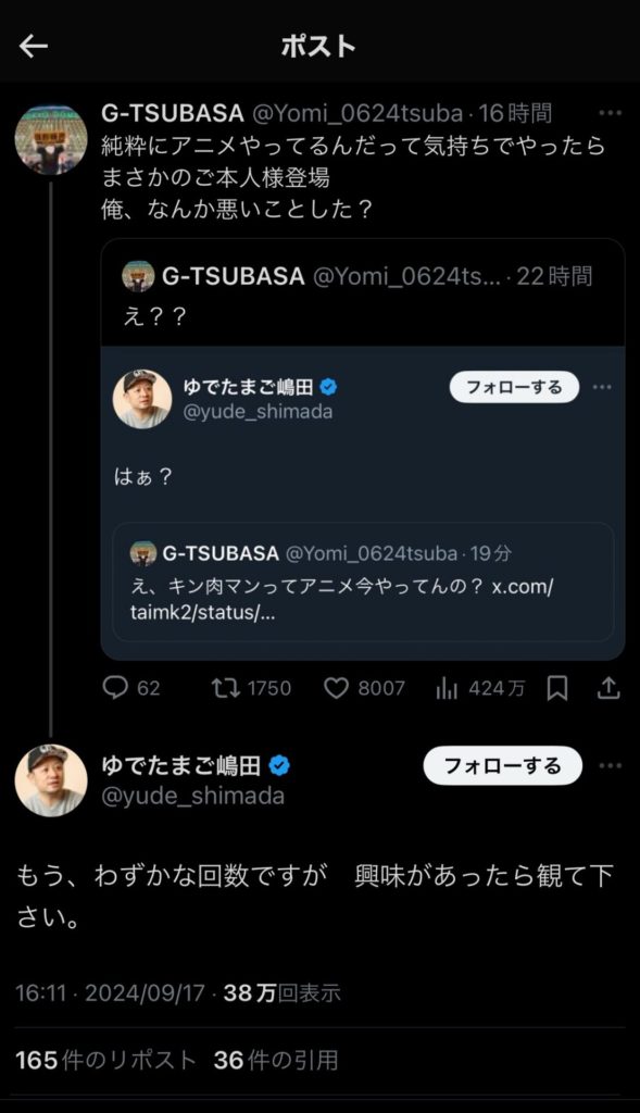 アニメやってるの?→やってるの知らなかった→話題になってないから気が付かなかった→おちょくられてるって受け止めたのかも