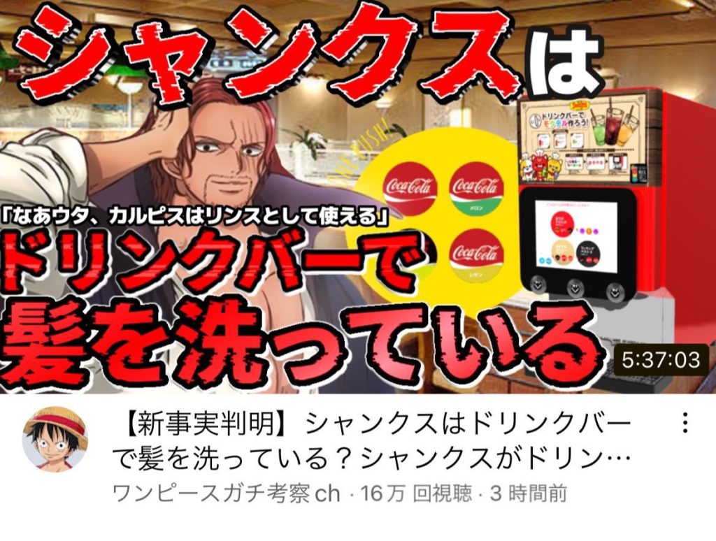 なんとシャンクスはドリンクバーで髪を洗っていた模様😊