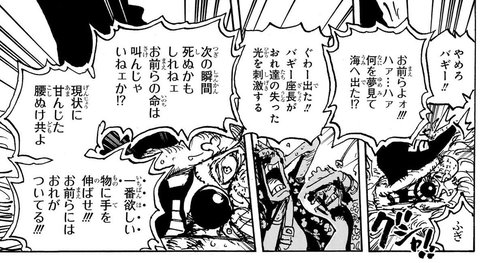 少しでもボロが出たら最優先で海軍に狙われる組織だからバギーがこう言っちまったらもうそれに従うしか無いからな